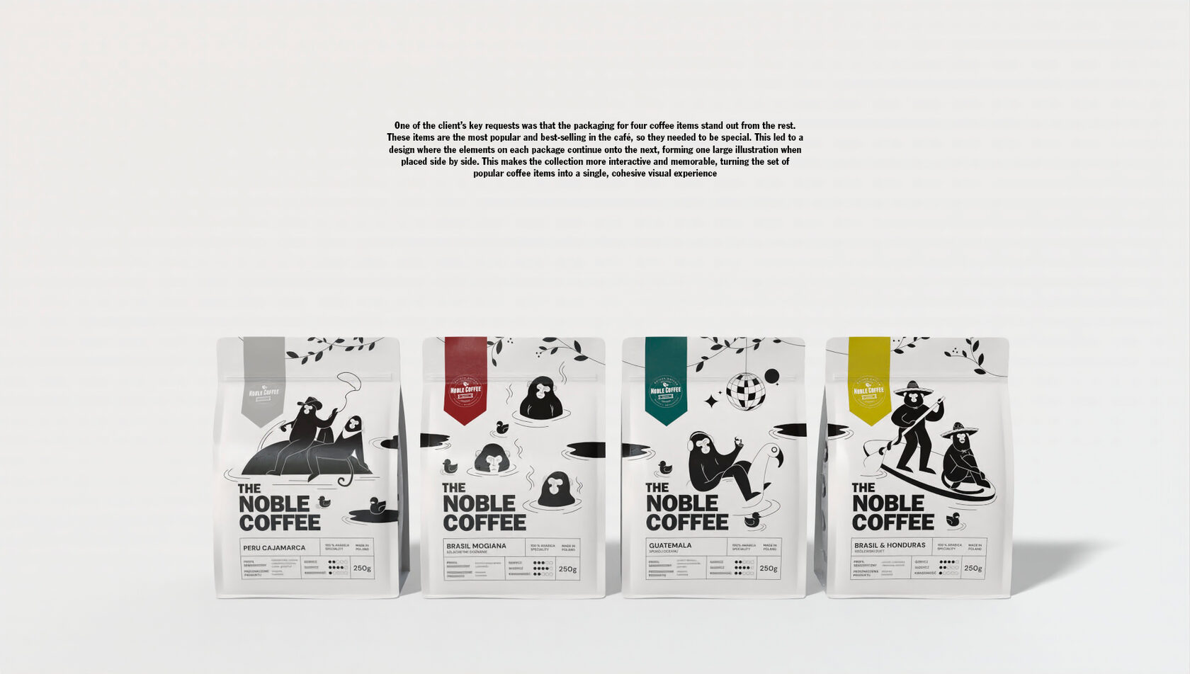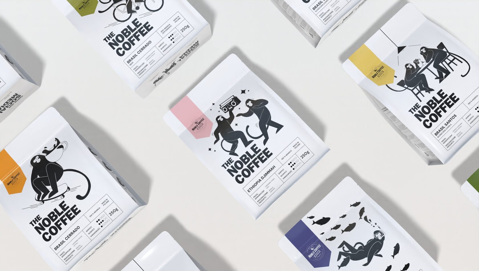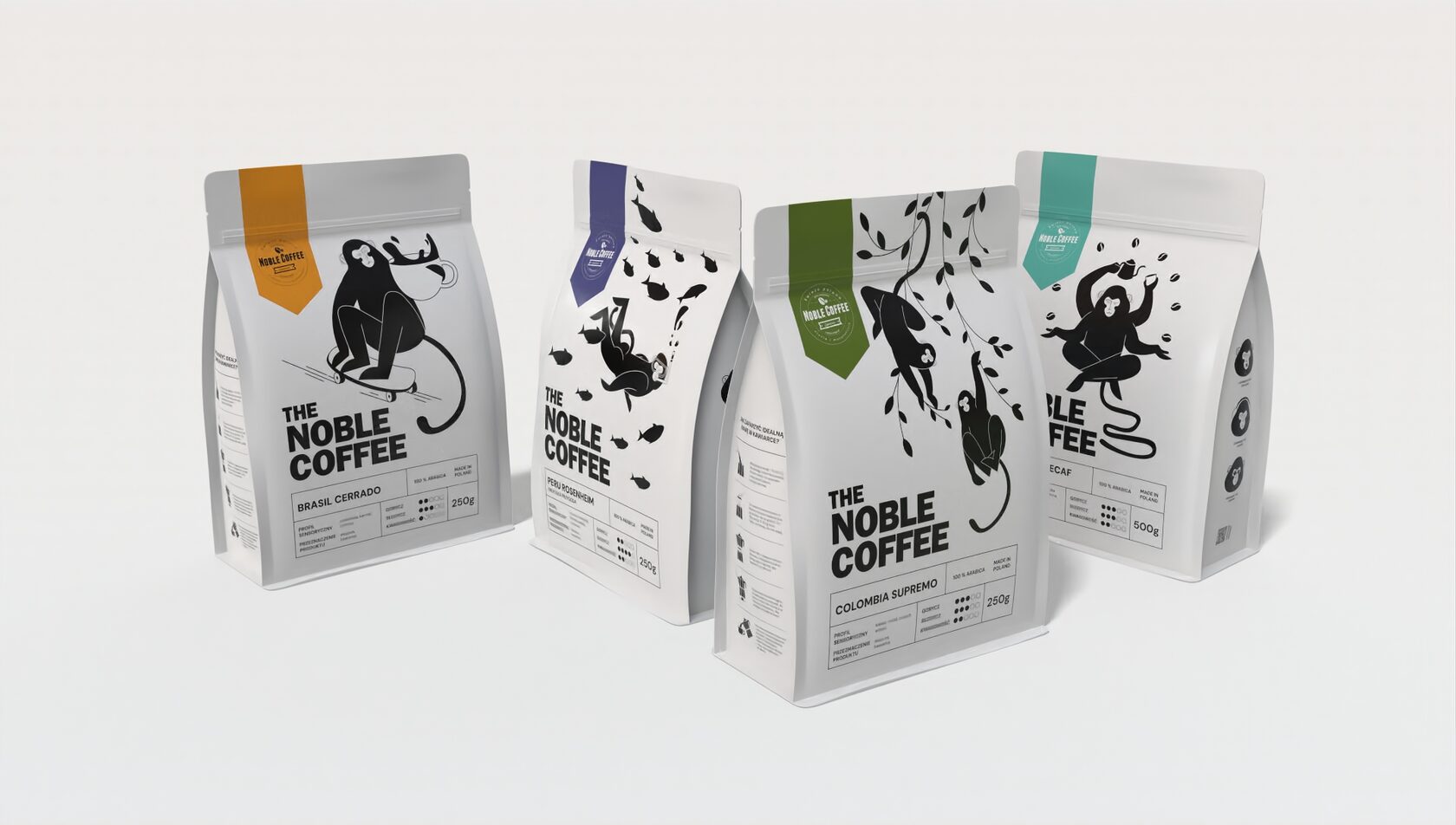 An extensive design project dedicated to creating a collection of packaging designs for a small coffee roasting company located in Warsaw. The work involved developing a unified visual identity across multiple packaging formats, combining creativity with functionality to strengthen the brand’s presence. The entire project was executed in Adobe Illustrator, requiring advanced skills in vector illustration, attention to detail, and the ability to translate artistic ideas into practical design solutions