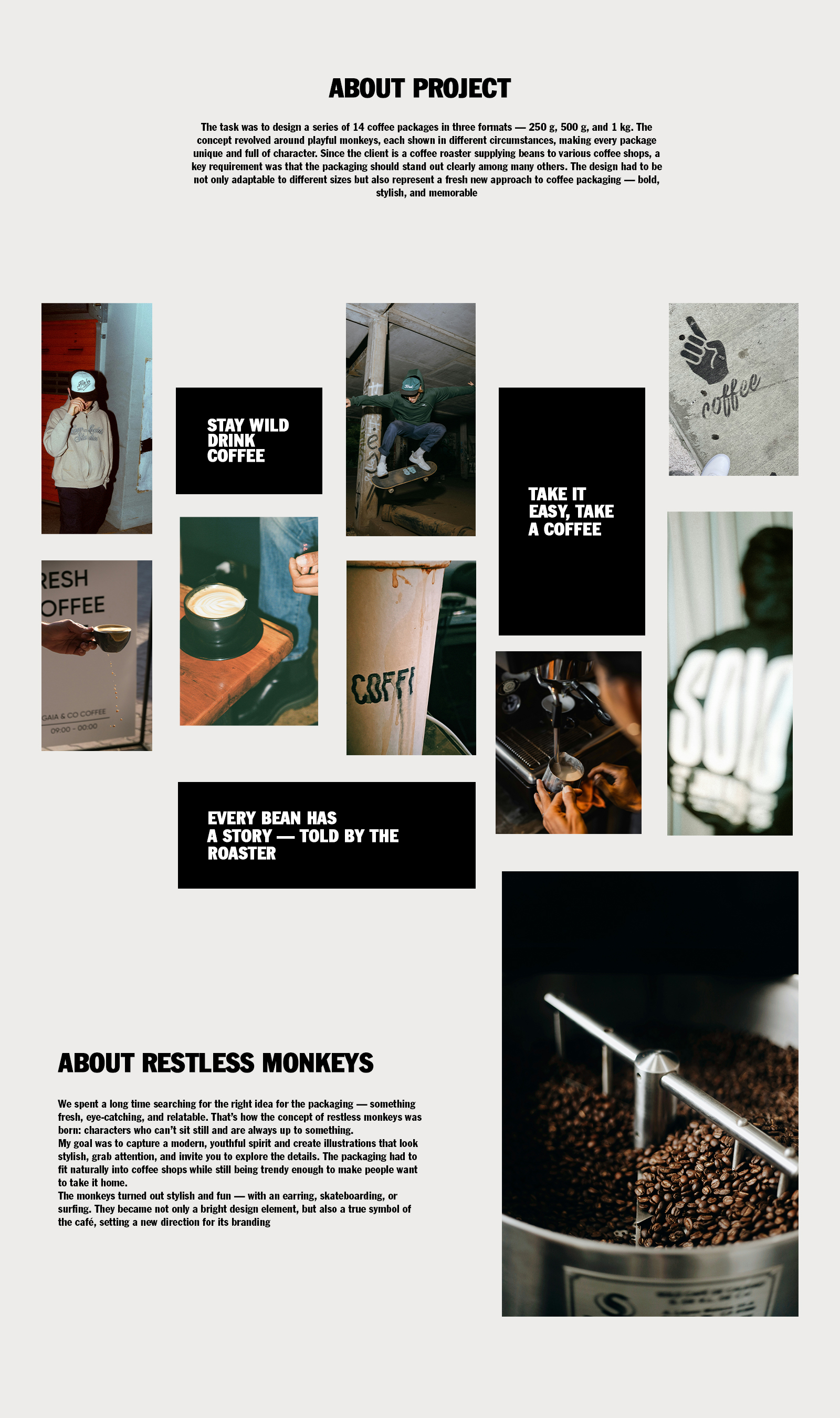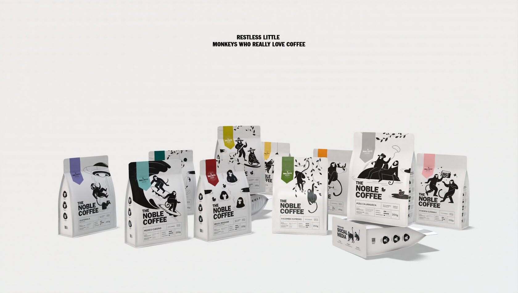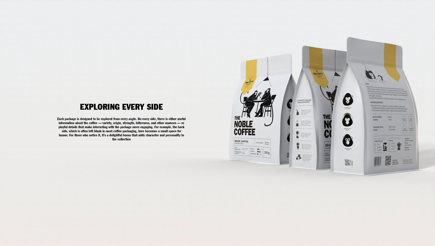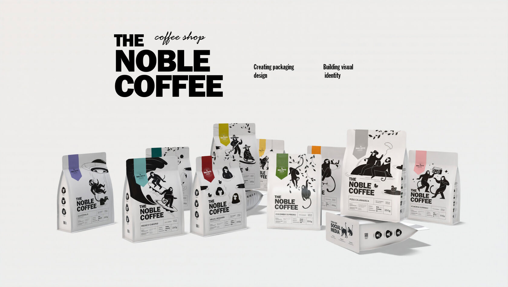 An extensive design project dedicated to creating a collection of packaging designs for a small coffee roasting company located in Warsaw. The work involved developing a unified visual identity across multiple packaging formats, combining creativity with functionality to strengthen the brand’s presence. The entire project was executed in Adobe Illustrator, requiring advanced skills in vector illustration, attention to detail, and the ability to translate artistic ideas into practical design solutions