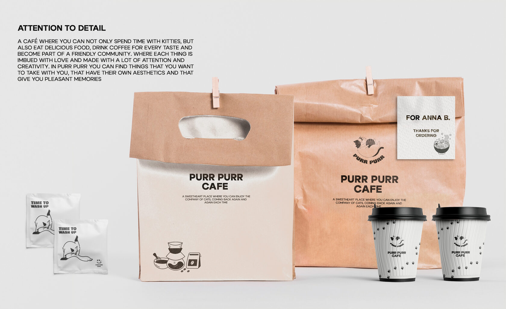 PURR PURR was perhaps the most comprehensive and creatively rich project I have worked on. It involved developing the entire brand identity — from designing the logo to creating the café’s code of conduct. The project offered a wide creative space, with a strong focus on modern aesthetics and an open approach to experimentation. I took full advantage of this freedom, exploring numerous ideas and proposing a variety of unique and engaging design solutions