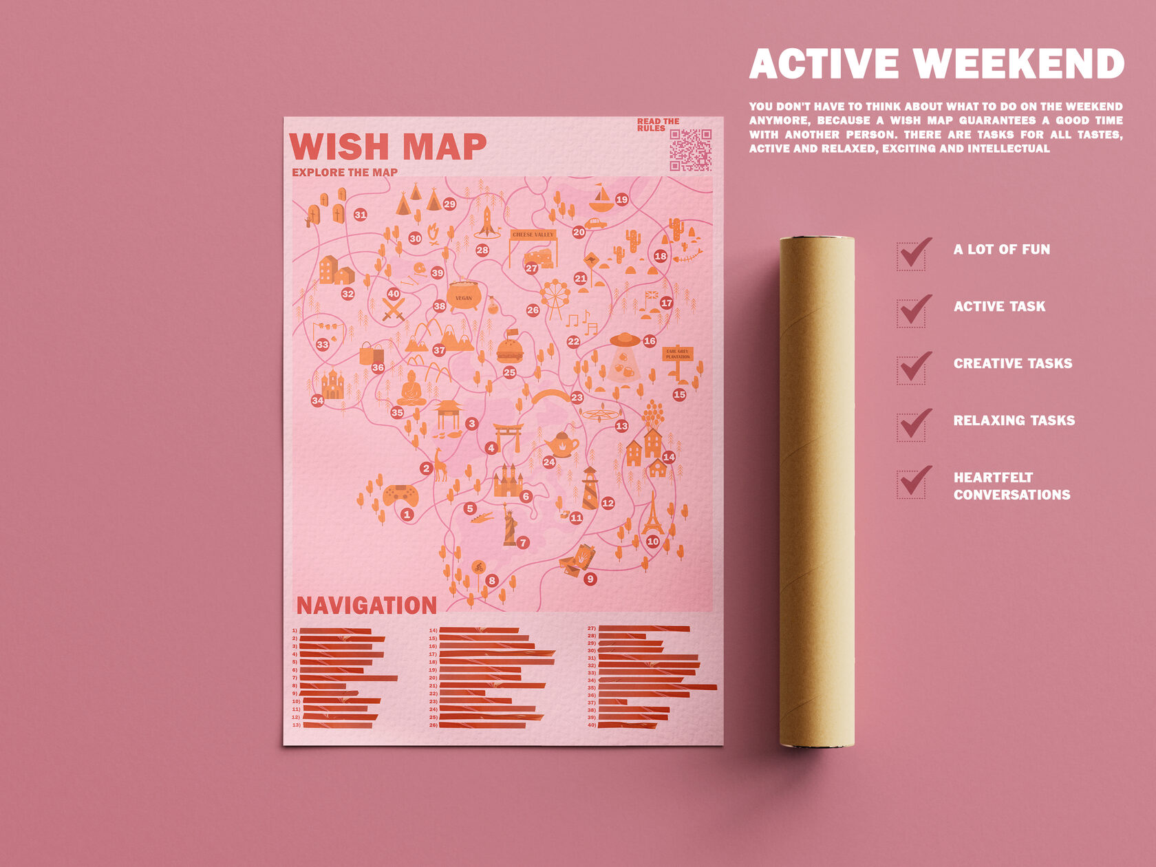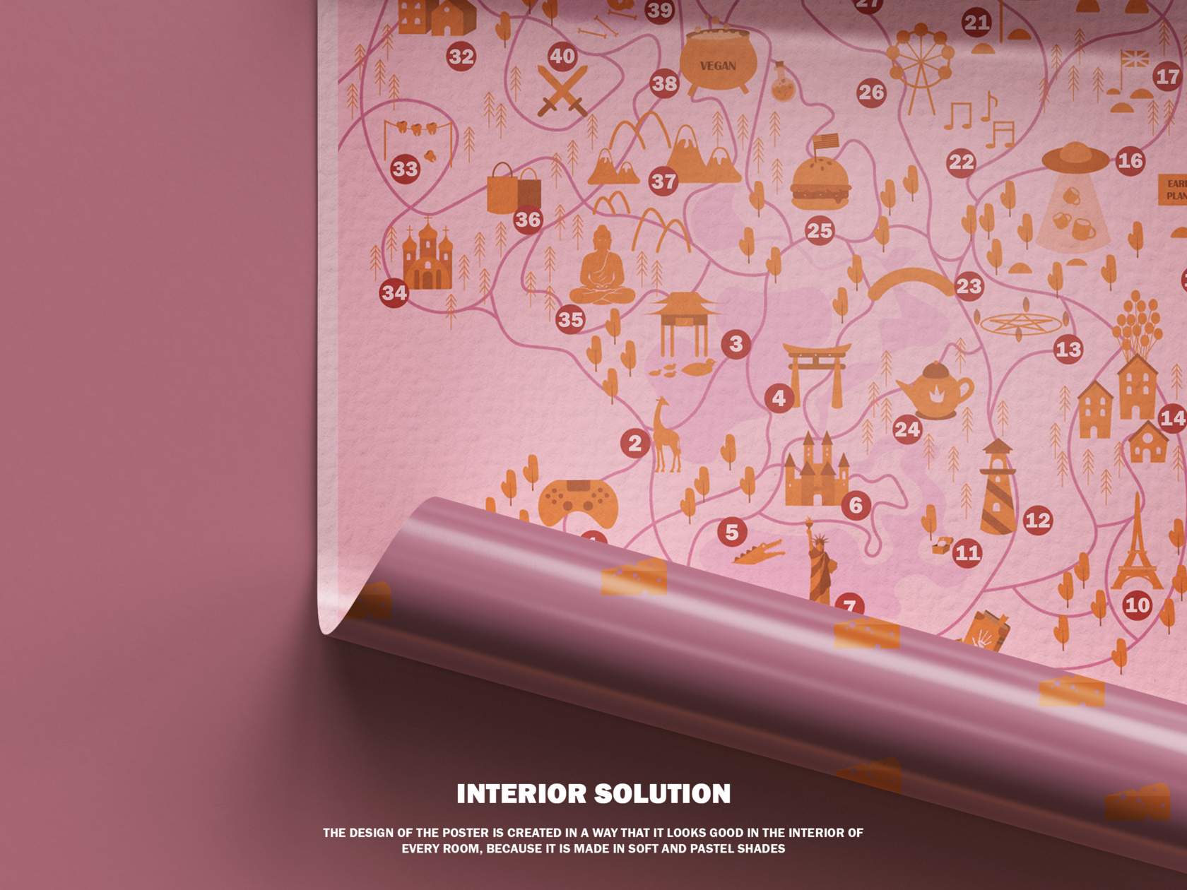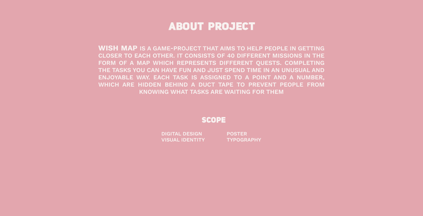 Wish Map is a poster project featuring a detailed map filled with numerous vector icons, each representing a specific task or challenge. Designing visuals for a game was an especially engaging experience that combined creativity and precision. A great deal of time was devoted to drawing and inventing various vector icons, making the process both imaginative and rewarding. This project was full of creativity and playful energy, which made it particularly meaningful to me